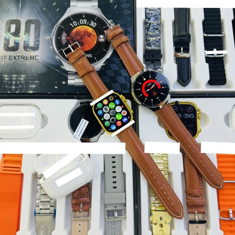 Best 2 in 1 couple Smartwatches Extreme Set 10 in 1 with 2 Smartwatch *Ultra 2 + Watch GT4* + 5th Generation In Ear Bluetooth Headphones + 7 Straps Watches with 2.3 Inch HD Large Screen and Wireless Charging Series 9
